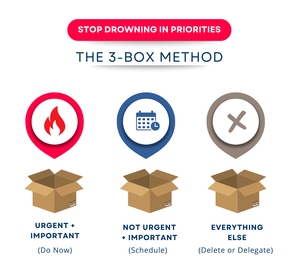 The magic happens when you schedule time in your daily routine for Box 2 work. You'll find yourself with fewer Box 1 crises over time.